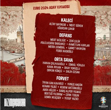 İşte A Milli Takım'ın 26 kişilik EURO 2024 kadrosu şu şekilde: