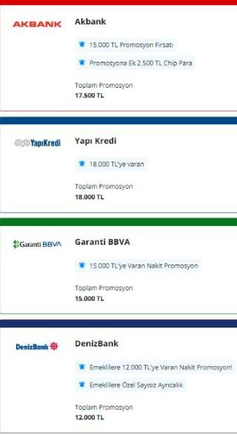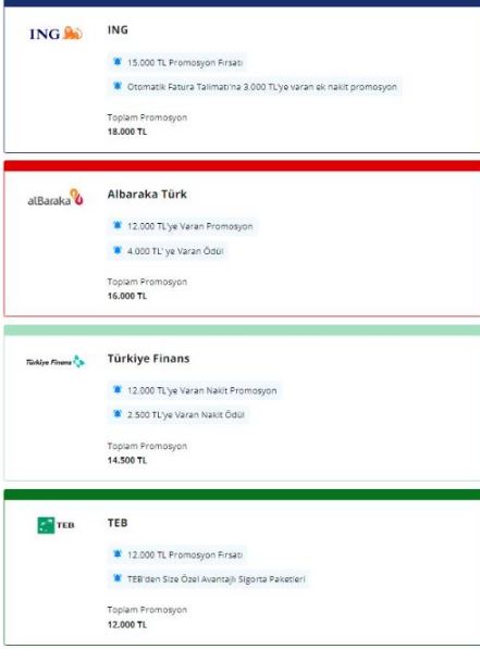 Şu anki kampanyalar incelendiğinde, en yüksek promosyonu veren bankalar Yapı Kredi Bankası ve ING Bank, ek promosyon ödemeleriyle toplamda 18 bin TL'ye ulaşıyor.