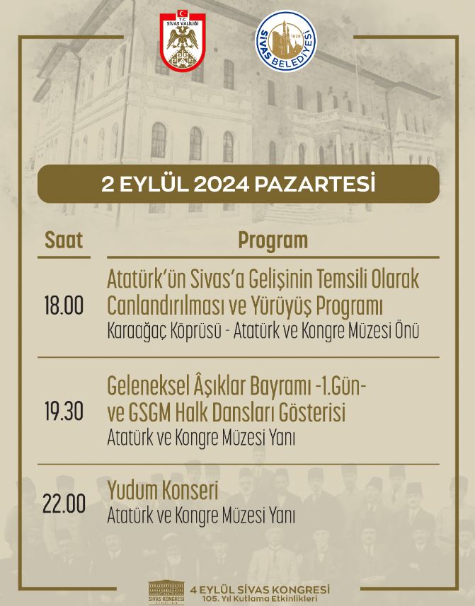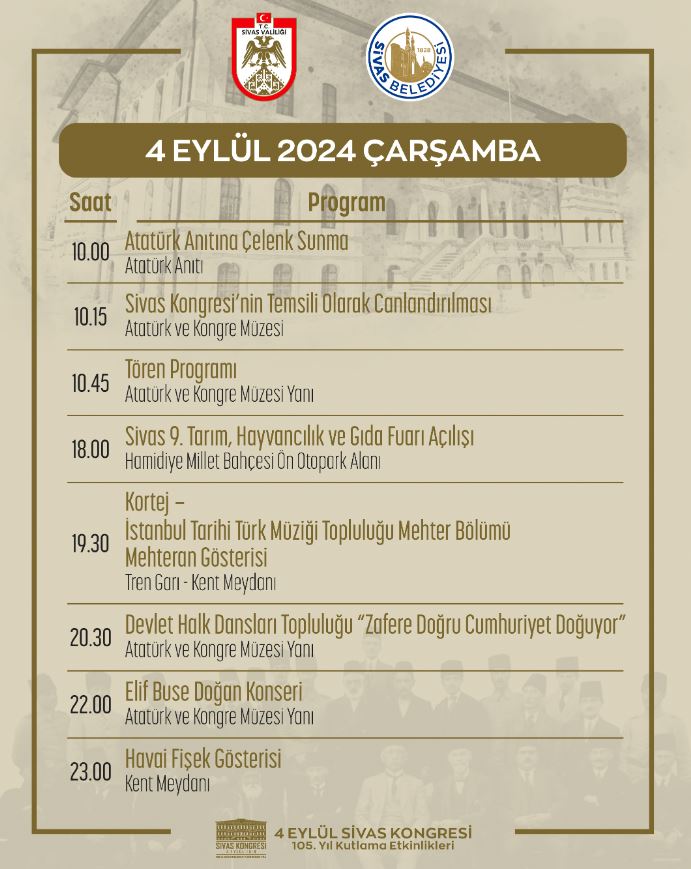 4 Eylül Sivas Kongresi’nin 105’inci yıldönümü yaklaşıyor.