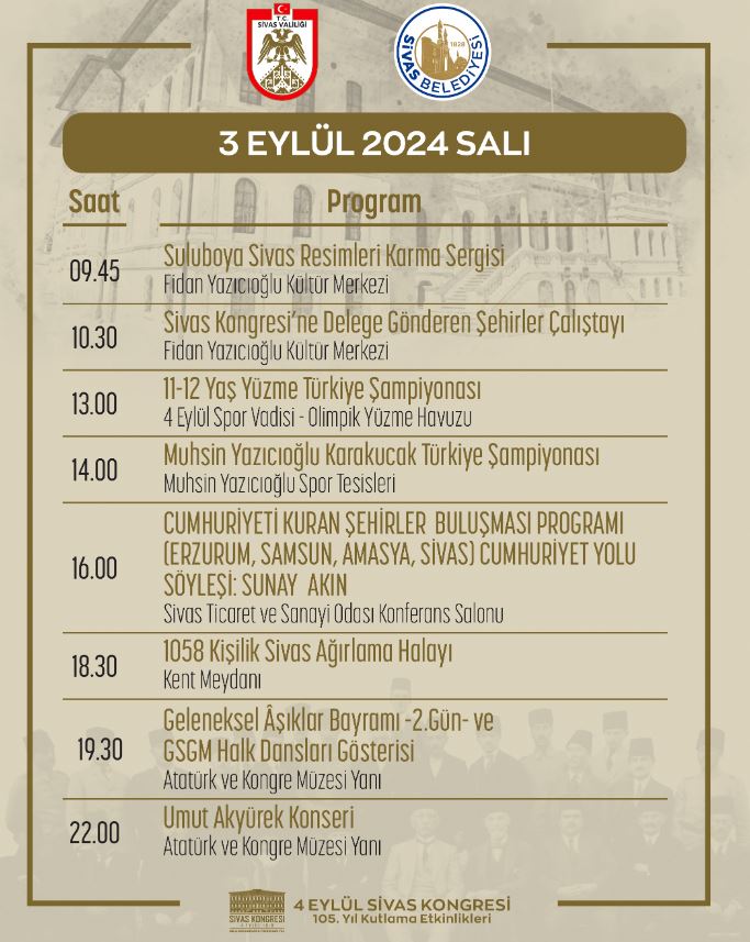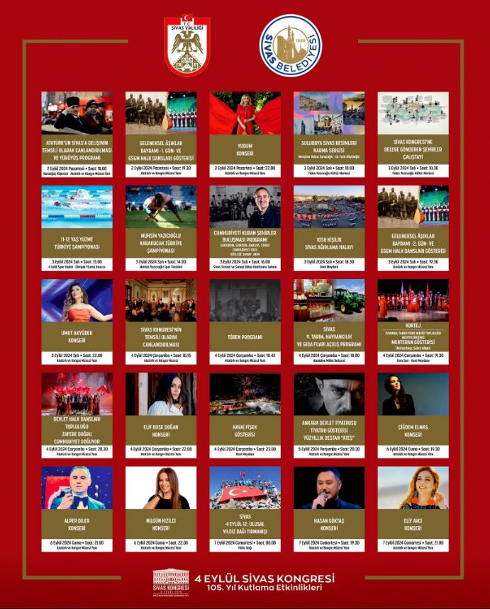 Sivas Valiliği yaptığı açıklamada: 2-7 Eylül 2024 tarihleri arasında düzenlenecek etkinliklere tüm Sivaslıları davet etti.