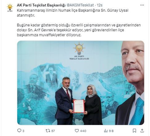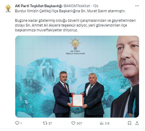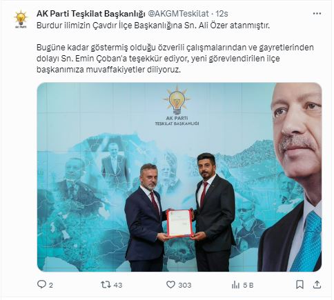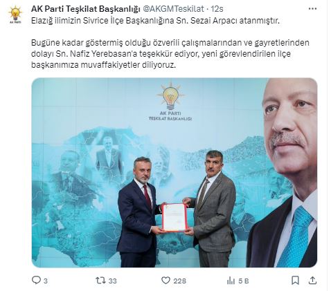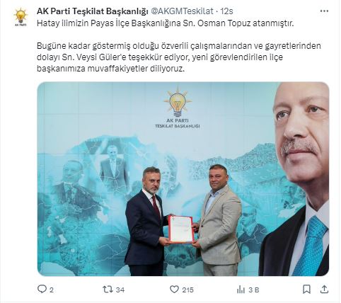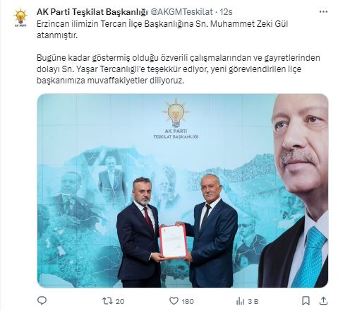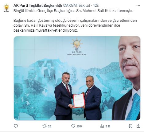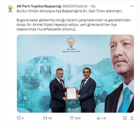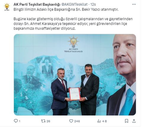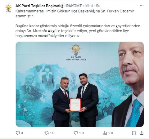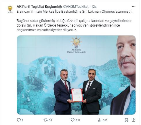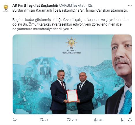 AK Parti Teşkilat Başkanlığı sosyal medya hesabından atamaları şöyle duyurdu: