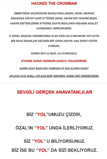 Anavatan Partisi'nin resmi internet sitesi, protesto amaçlı siber saldırıya uğradı.