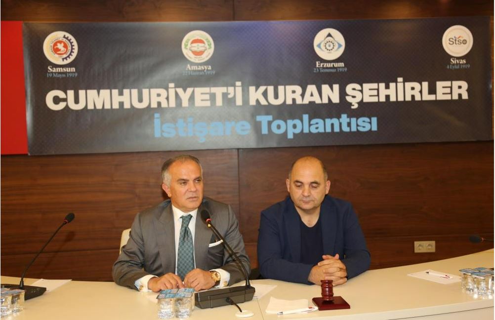 Programın ev sahipliğini yapan STSO Yönetim Kurulu Başkanı Zeki Özdemir, “Geçen sene Erzurum Ticaret ve Sanayi Odamızla beraber, genişleterek devam ederiz ümidiyle başladığımız Cumhuriyeti Kuran Şehirler buluşmalarımıza bu sene Amasya ve Samsun Odalarımıza da dâhil etik. Cumhuriyete giden yol, Samsun’dan başlayıp ülkemizin kurtulması için alınan nihai kararlarla Sivas’ta son buldu. Aslında bu yolculuğu son olarak değil bir başlangıç olarak değerlendiriyorum. Cumhuriyeti Kuran Şehirler programlarımızı, önümüzdeki yıllarda genişleterek ulusal bir program haline getirme düşüncesindeyiz. TOBB Başkanımız Sayın Rifat Hisarcıklıoğlu’nun öncülüğünde ve diğer başkanlarımızın da katkılarıyla inşallah bundan sonra ülke sathında ses getiren bir programla taçlandırmayı planlıyoruz. Bizlerde Ticaret ve Sanayi Odaları olarak, bundan sonra Cumhuriyet Kuran Şehirlerimizi bir araya getirerek mensuplarımız olan tüccarlar ve sanayicilerimizin ekonomik ve ticari gelişimi ile sosyal ve kültürel birlikteliğini sağlamayı amaçlıyoruz” ifadelerini kullandı.