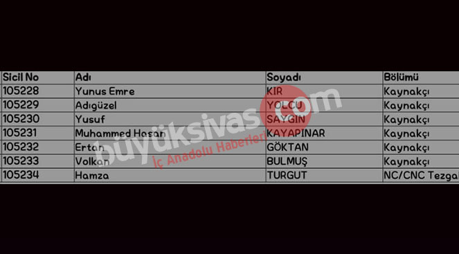 Mahkemeye başvuran 6 kaynakçı, 1 CNC operatörü bugün Türasaş Sivas Bölge Müdürlüğünde iş başı yaptı.