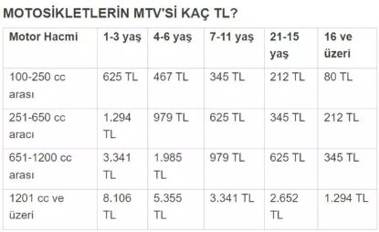 AK Parti Grup Başkanı Abdullah Güler, bu motosikletlerin vergilendirilmesinin, mevcut en düşük vergi diliminden başlayarak gerçekleştirileceğini belirtti. 2024 yılı MTV tablosuna göre, en düşük vergi oranı 625 TL olarak belirlendi.
