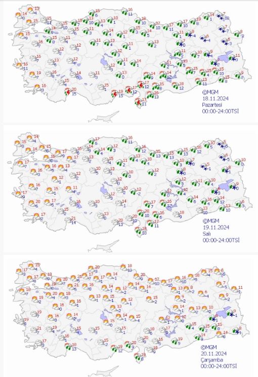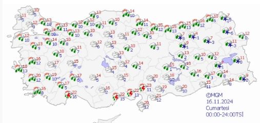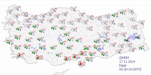 Hava sıcaklıklarının bugün Akdeniz kıyı kesimleri dışında kalan yerlerde 2 ila 4 derece azalması, Akdeniz kıyılarında önemli bir değişiklik olmaması beklenmektedir.