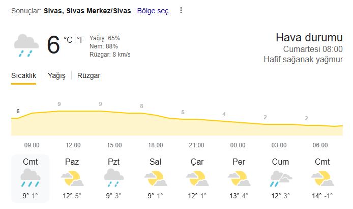 Sivas'ta hava durumu nasıl?