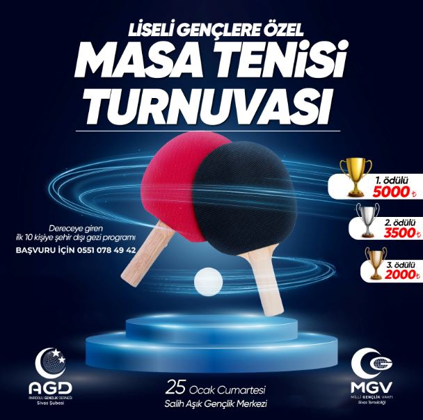 Ayrıca, dereceye giren ilk 10 öğrenciye şehir dışı gezi programı hediye edilecek. Masa tenisinde yeteneğine güvenen tüm lise öğrencileri turnuvaya başvurabilir. Başvurular için 0551 078 49 42 numaralı telefondan bilgi alınabilir.
