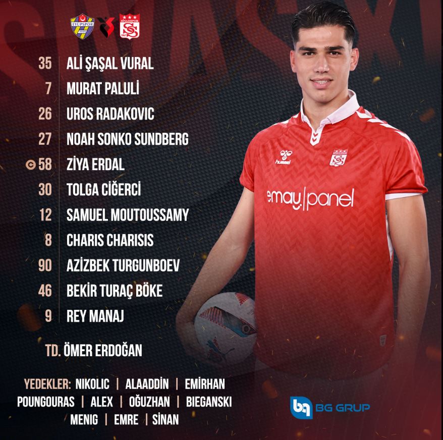 Net Global Sivasspor: Ali Şaşal, Murat, Radakovic, Sonko, Ziya, Tolga, Charisis, Moutoussamy, Azizbek, Bekir, Manaj.