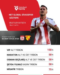 Trendyol Süper Lig'in 27. haftasında Sivasspor ile Göztepe arasında oynanacak karşılaşmanın biletleri satışa sunuldu.