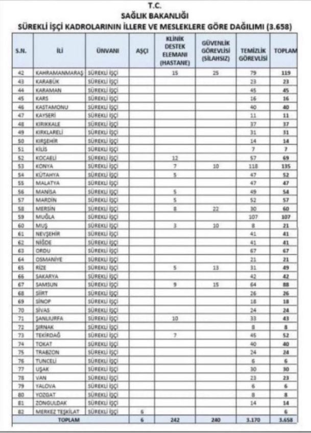 Sağlık Bakanı Kemal Memişoğlu geçtiğimiz günlerde yaptığı açıklamada ilk etapta 19 bin personelin istihdam edileceğini duyurmuştu. 3 bin 658 işçi alımının da bu genel planlama kapsamında olduğu değerlendiriliyor.