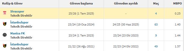 Daha sonra Manisa FK’da 9 maçta 1.44, İstanbulspor’da ikinci döneminde ise 63 maçta 1.40 puan ortalaması yakalayan Korkmaz, Sivasspor’daki performansıyla bu ortalamaların oldukça uzağında kaldı.