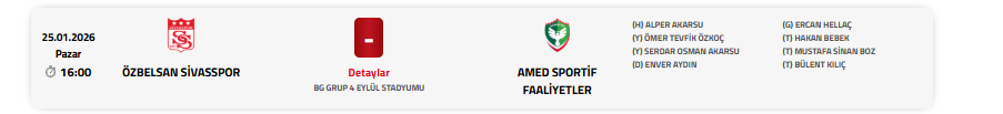 Sivasspor, Amed Sportif Faaliyetler, TFF 1. Lig, 25 Ocak 2026, BG Grup 4 Eylül Stadyumu, Sivasspor Amed maçı, Sivas futbol, Alper Akarsu