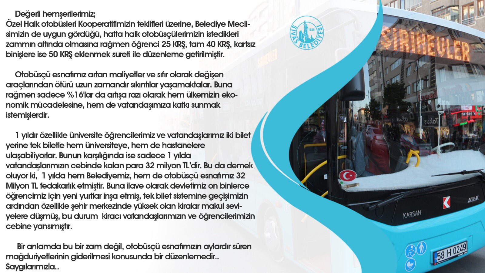 Bende 2 öğrenci babasıyım öğrenciliğin ne demek olduğunu gayet iyi biliyorum.Ulaşımla ilgili ücret tarifesinin yenilenmesinde zam yok aylardır mağdur olan fedakarlık yapan Otobüsçü esnafımızın mağduriyetlerini aza indirmek var. Hepiniz başımızın tacısınız sizi seviyoruz..
