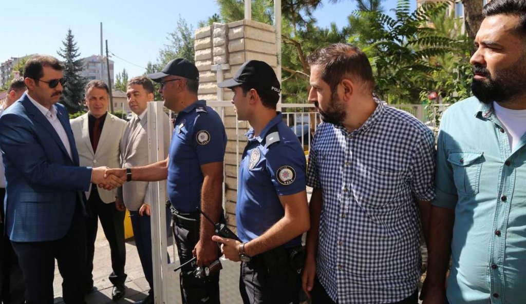 Kurban Bayramı öncesinde yapılan çalışmaları ve alınan güvenlik tedbirlerini yerinde görmek üzere ilk olarak Alibaba Şehit Rüstem Demirbaş Polis Merkezi Amirliğini ziyaret eden Vali Salih Ayhan, güvenlik güçlerimizin bayramını kutladı.