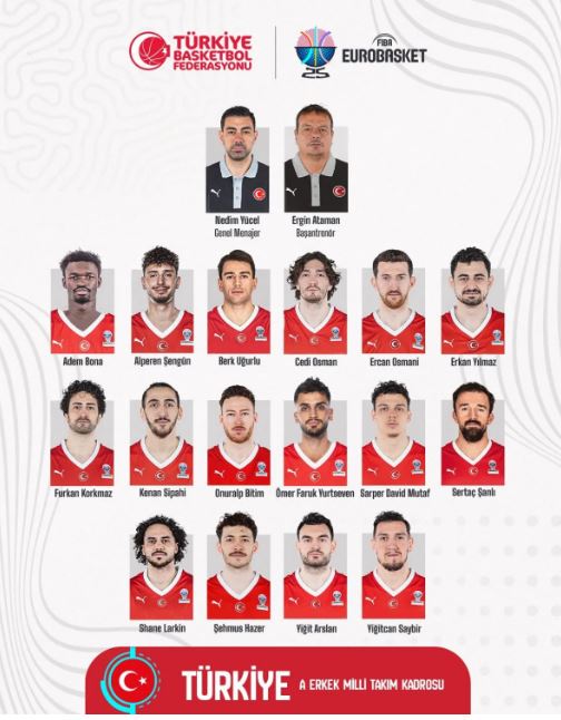 A Milli Erkek Basketbol Takımı'nın 2025 Avrupa Şampiyonası’nda mücadele edecek aday kadrosu belli oldu.