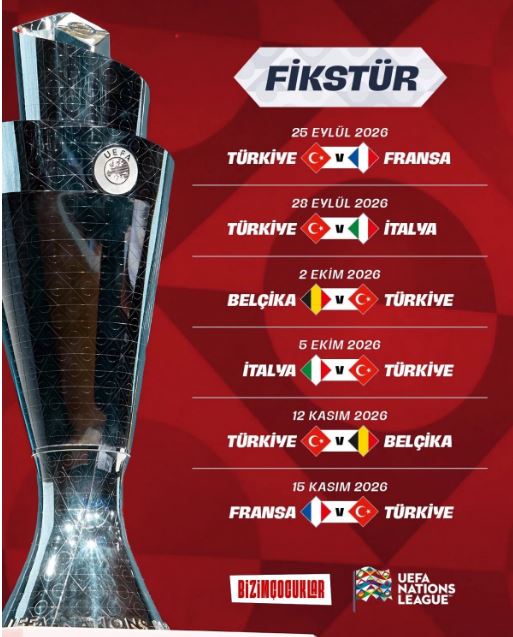 A Milli Takımın UEFA Uluslar Ligi Fikstürü Açıklandı... UEFA Uluslar A Ligi’ne yükselerek tarihinde ilk kez bu seviyede mücadele edecek olan A Milli Futbol Takımı’nın 2026-2027 sezonu maç takvimi belli oldu.