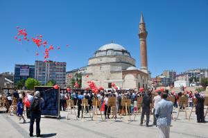 Anadolu Ajansı (AA) foto muhabirlerinin, Fetullahçı Terör Örgütü'nün (FETÖ) 15 Temmuz darbe girişimi sırasında ve sonrasında çektiği fotoğraflardan oluşan "Anadolu Ajansı Objektiflerinden Milli İradenin Yükselişi Sergisi" Sivas'ta tarihi Buruciye Medresesi önünde açıldı.