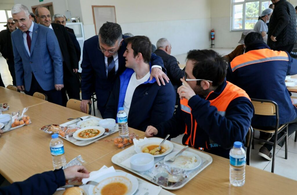 Abdullah Güler Türasaş Sivas Bölge Müdürlüğü yemekhanesinde öğle arasında çalışan personelle sohbet ederek, öğle yemeğine katılıp fabrikadan ayrıldı. (Emre Gençleşen)