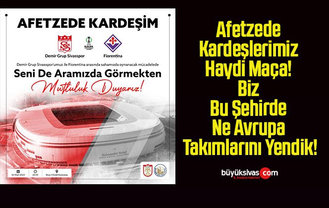 Yarın Sivas 4 Eylül Stadyumunda saat 20:45'te oynanacak Uefa Konferans Ligi'nde Demir Grup Sivasspor ile Fiorentina arasındaki maça afetzedeler davet edildi.