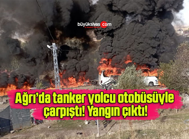 Ağrı’da tanker yolcu otobüsüyle çarpıştı! Yangın çıktı!
