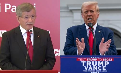 Basın toplantısında Özgür Özel'in solunda yer alan Davutoğlu’nun saçlarının ön kısmı, ışığın etkisiyle sarı renkte parladı. Bu görüntü, sosyal medyada birçok kullanıcı tarafından ABD eski Başkanı Donald Trump’a benzetilerek yorumlandı.