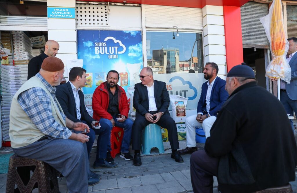 AK Parti Sivas Merkez İlçe Başkanlığı tarafından Eski Buğday Pazarı'nda ki esnaflar ile organize edilen kahvaltıda Sivas Belediye Başkanı Hilmi Bilgin ile esnaflar buluşarak görüş alışverişinde bulundu.