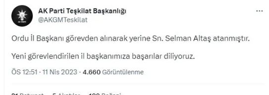 AK Parti Adayları İçin Tweet Atmıştı! O İl Başkanı Görevden Alındı!