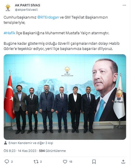 AK Parti Sivas İl Başkanlığı sosyal medya hesabından yaptığı açıklamada: