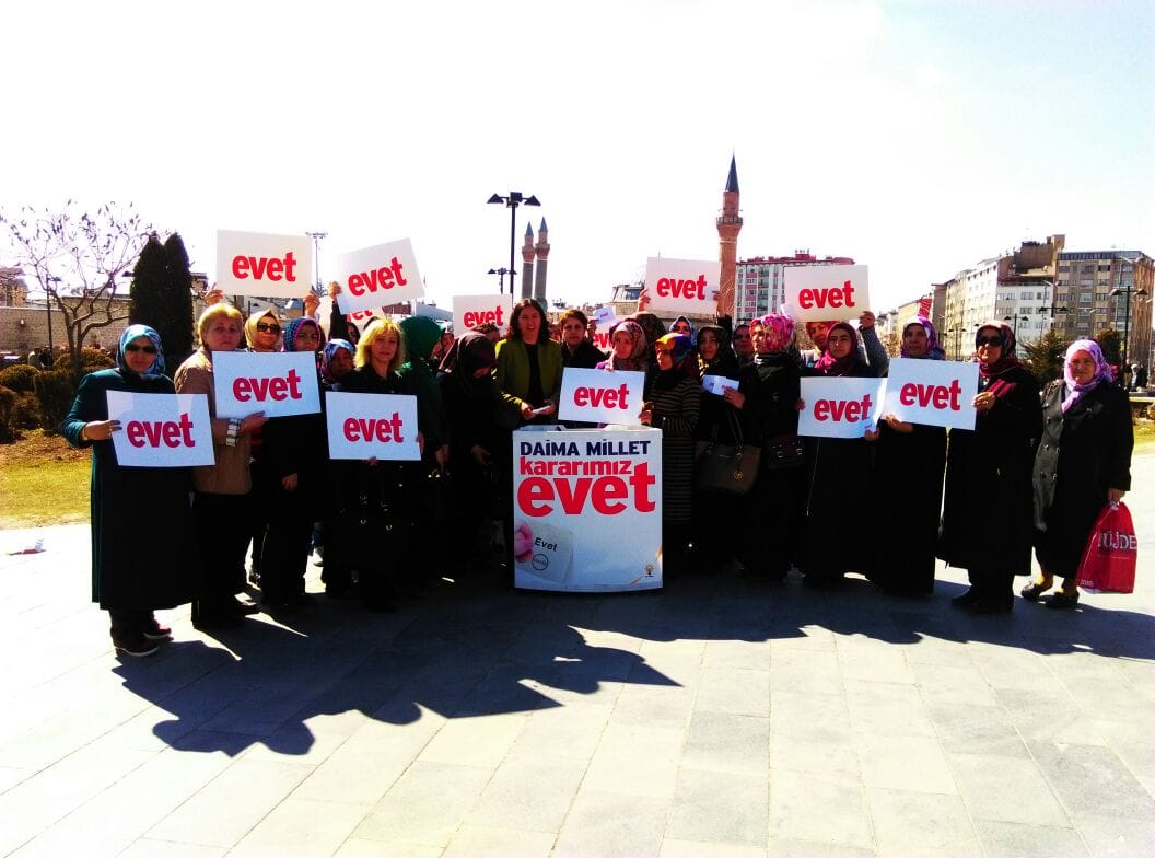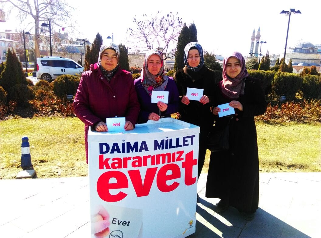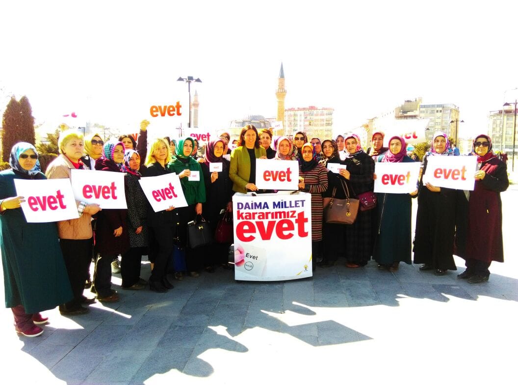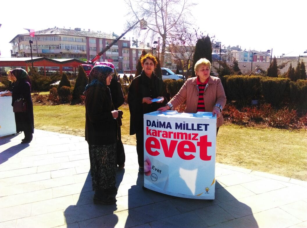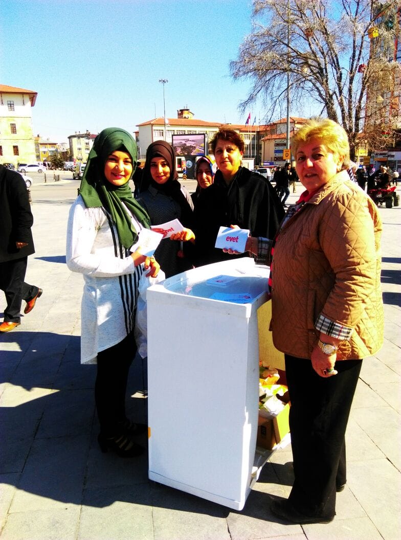 Açıklamayı yapan AK Parti Kadın Kolları Başkanı Semiha Ekinci "Bugün AK Parti Sivas Kadın Kolları olarak 8 Mart Dünya Çalışan Kadınlar Günü dolayısıyla meydan da stant kurduk. Hükümetimizin 13 Yılda yapmış olduğu sadece kadınların 18 Maddelik icraatlarımız ve arkasında EVET stickerlarımızı dağıttık. Ben bugünün anısına bütün kadınlarımızın 8 Mart Dünya Çalışan Kadınlar gününü kutluyorum. Bizler AK Parti ailesi olarak kadınlarımızın daha iyi daha güzel bir ülkede yaşaması için var gücümüzle sahada çalışmaya devam edeceğiz tekrar 8 Mart Dünya Kadınlar günü kutlu olsun diyor herkese saygılar sunuyorum." dedi.