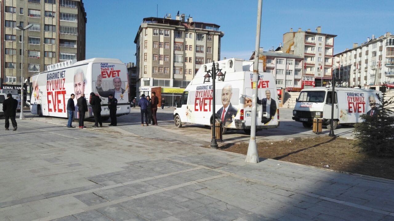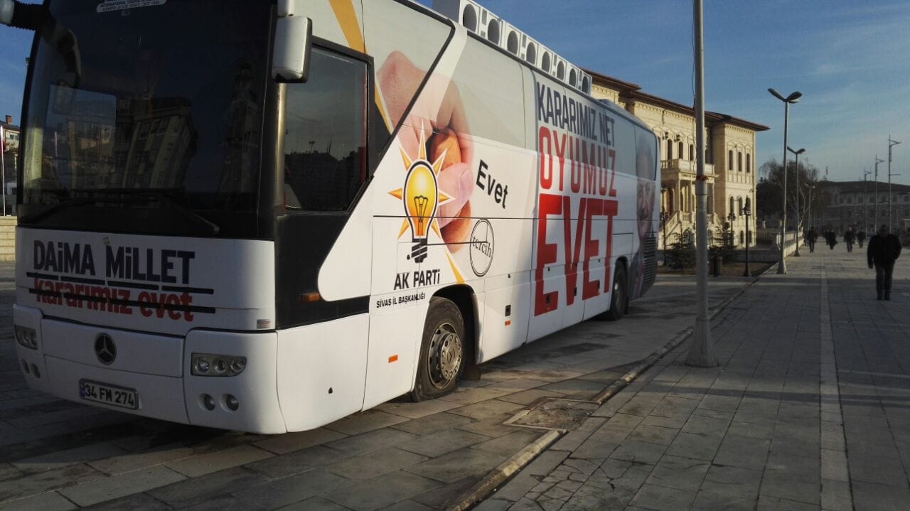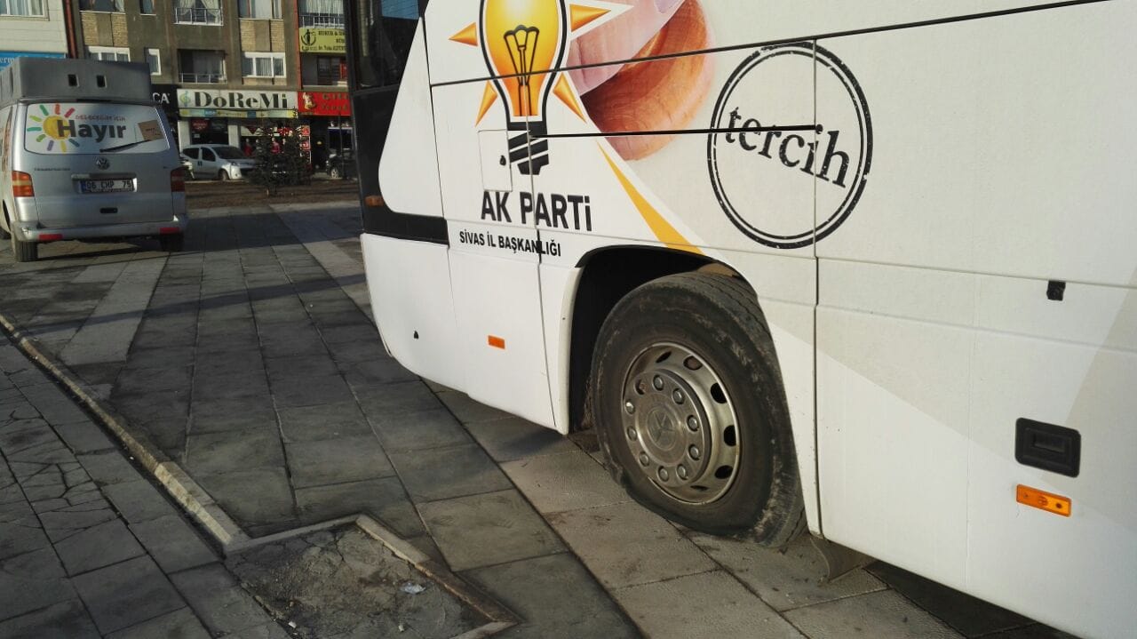 AK Parti İl Başkanlığının Referandum çalışmaları kapsamında kullandığı, Sivas Atatürk Kongre ve Etnografya Müzesi bahçesinde bulunan 1 minibüs ve 1 otobüsün lastikleri kimliği belirsiz kişi yada kişilerce kesildi.