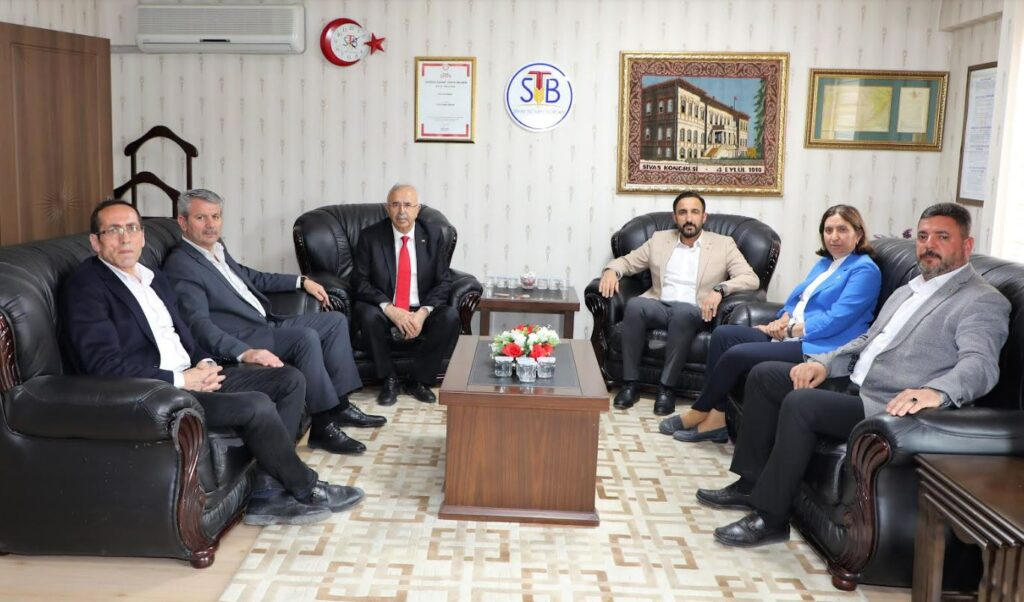14 Mayıs'taki seçimlerde yeniden aday gösterilmeyen Milletvekili Soluk ve Ekinci, Sivas Ticaret Borsası Yönetim Kurulu Başkanı Hayrullah Karakaya veborsa Yönetim Kurulu Üyeleri tarafından karşılandı.