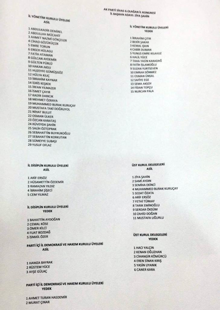 Geçmiş listede yer alan 132 kişiden yeni listede toplam 38 isim Asıl Yönetim Kurulu Üyeliği, Yedek Yönetim Kurulu Üyeliği, Asıl İl Disiplin Kurulu Üyeliği, Yedek İl Disiplin Kurulu Üyeliği, Asıl Parti İçi Demokrasi ve Hakam Kurulu Üyeliği, Yedek Parti İçi Demokrasi ve Hakam Kurulu Üyeliği, Asıl Üst Kurul Delegeliği, Yedek Üst Kurul Delegeliği görevlerinde kendisine yer buldu.