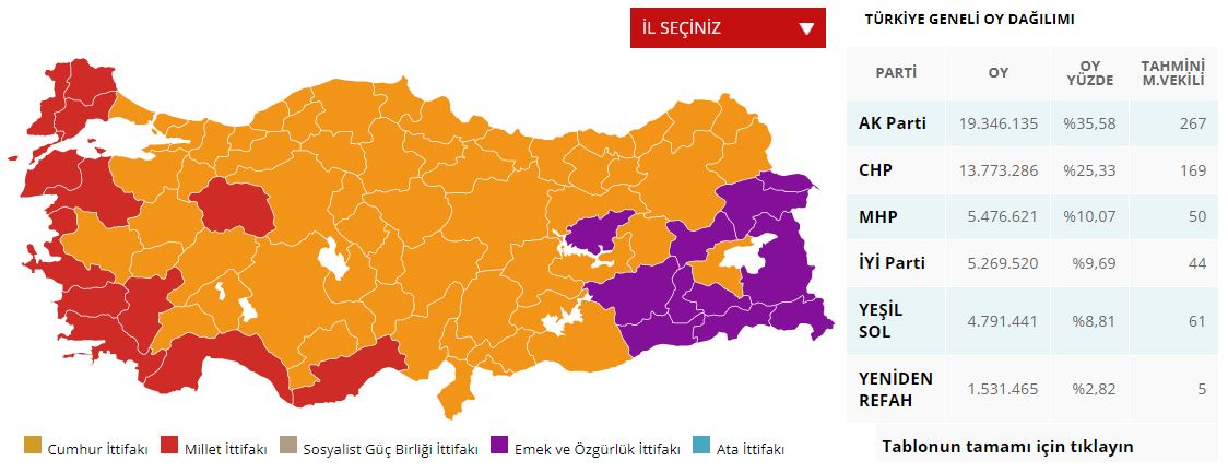 14 Mayıs 2023 Milletvekili seçimlerinde Cumhur İttifakı olarak TBMM'de çoğunluk sağlansa da AK Parti'nin oy oranında düşüş yaşandı. AK Parti Türkiye genelinde % 36 oy alabildi. 2018 seçimlerinde % 43 oy alan AK Parti, 2023 seçimlerinde ise %7 oranında düşüş yaşamış oldu.