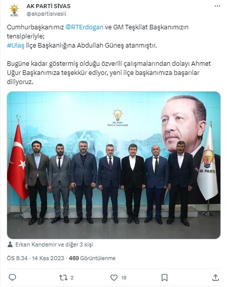 AK Parti Sivas İl Başkanlığı sosyal medya hesabından yaptığı açıklamada: