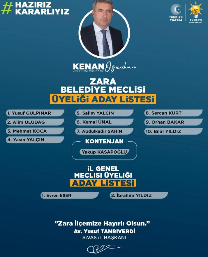 AK Parti Zara İl Genel ve Belediye Meclisi Üyesi Adayları Belli Oldu!