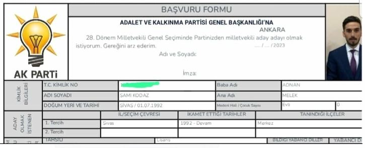 Bugün ise daha önce aday adayı olacağını açıklayan Sami Kodaz AK Partiden resmen milletvekili aday adayı oldu.