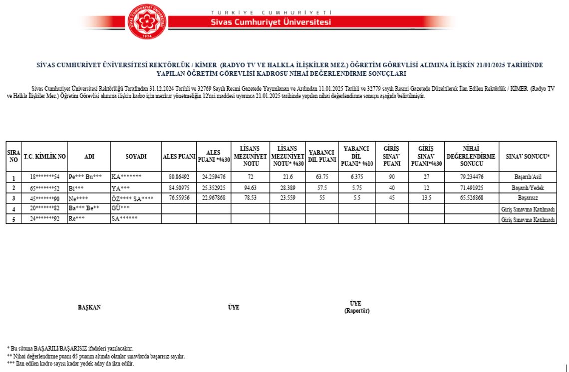 Alım sürecinde ilk sırada yer alan kişinin, İletişim Fakültesi’nde görev yapan Ö.K’nin eşi P.B.K. olduğu belirtiliyor. Ayrıca jüri üyelerinin akademik geçmişleri incelendiğinde, sınava giren kişinin eşi olan Ö.K ile aynı bölümde görev yapan M.Y, Ö.A, S.D. gibi isimlerin sürece dahil olduğu iddia ediliyor. Bunun yanı sıra, CHP eski il başkanının gelini olduğu öne sürülen bir ismin sınav sürecinde yer alması ve jüri başkanının yine aynı fakülteden bir akademisyen olması, sürecin tarafsızlığı konusunda soru işaretleri oluşturuyor.
