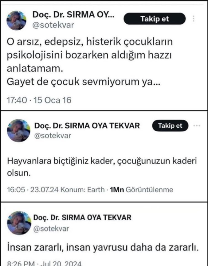 Ankara Üniversitesi İletişim Fakültesi’nde akademisyen olarak görev yapan Sırma Oya Tekvar’ın, sosyal medya hesabı üzerinden çocukları hedef alan ifadeler kullandığının ortaya çıkması üzerine vatandaşlar duruma tepki gösterdi. Gelişmelerin ardından üniversite yönetimi konuyla ilgili inceleme başlatıldığını açıkladı.