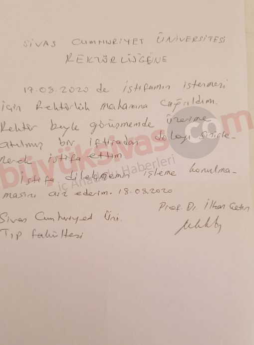 Prof. Dr. İlhan Çetin'e göre zorla, Prof. Dr. Alim Yıldız'a göre ise kendi rızasıyla istifa dilekçesi yazıldığı herkesin malumu...
