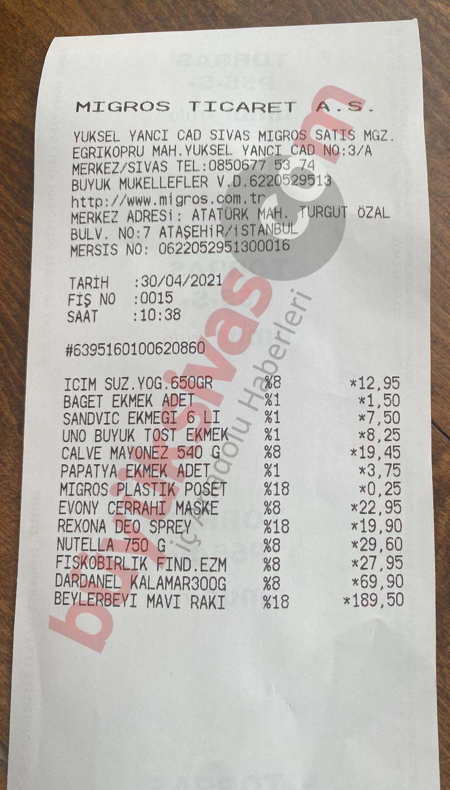 Büyük Sivas WhatsApp hattımız 05558981558'e Sivaslı vatandaşın ulaştırdığı fişte alkol satışı yapıldığı gözler önüne serildi.