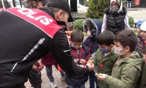 Gümüşhane’de Türk Polis Teşkilatı'nın 177. kuruluş yıldönümü etkinlikleri kapsamında polis telsizlerini kullanan çocuklar anonsla polislerden şeker istedi. Telsizin diğer ucundaki polis memurları çocukların bu isteğini kırmayarak şekerlerini getirdi.