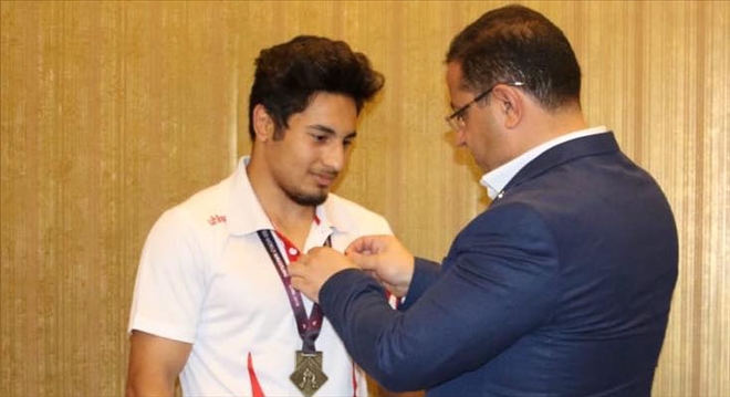 Sivas Ticaret ve Sanayi Odası Başkanı Mustafa Eken, Avrupa Schoolboys 15 yaş altı serbest güreş şampiyonasında 68 kiloda Avrupa Şampiyonu olan Halit Muhamed Ozmuş´u altınla ödüllendirdi.