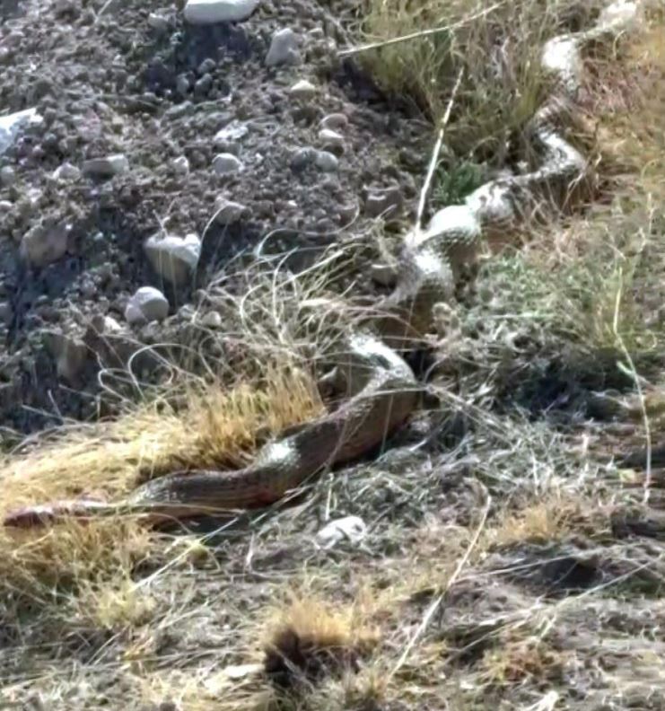 Sivas’ın Gürün ilçesi Dümerpınar köyü kırsalında ortaya çıkan yaklaşık 5 metre uzunluğundaki yılan görenleri korkuttu.