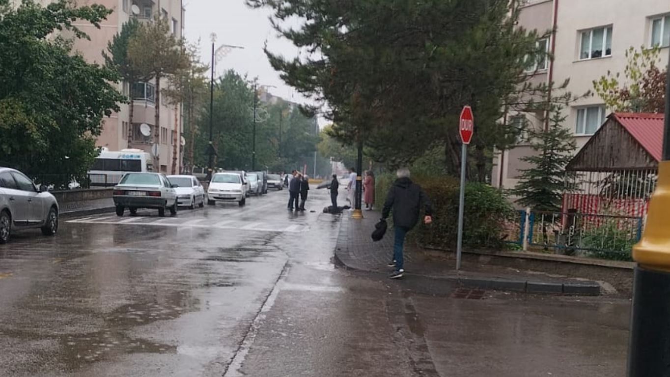 Kısa sürede olay yerine gelen sağlık ekipleri, yerde yatan vatandaşa müdahale etti. Bu sırada çevredeki duyarlı vatandaşlar, etkili olan yağmurun yere düşen kişinin üzerine yağmaması için şemsiyelerle koruma sağlamaya çalıştı.