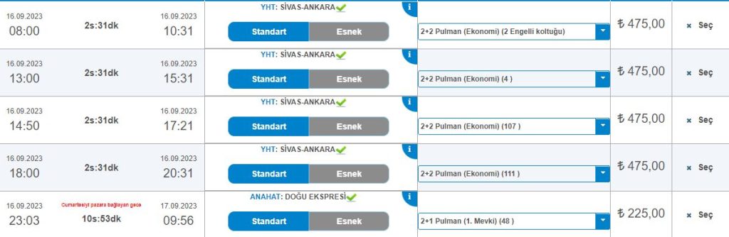 Temmuz ayında 312-TL'ye çıkarılan Sivas-Ankara hızlı tren yolculuğu gelen son zam sonrasında 475-TL oldu.