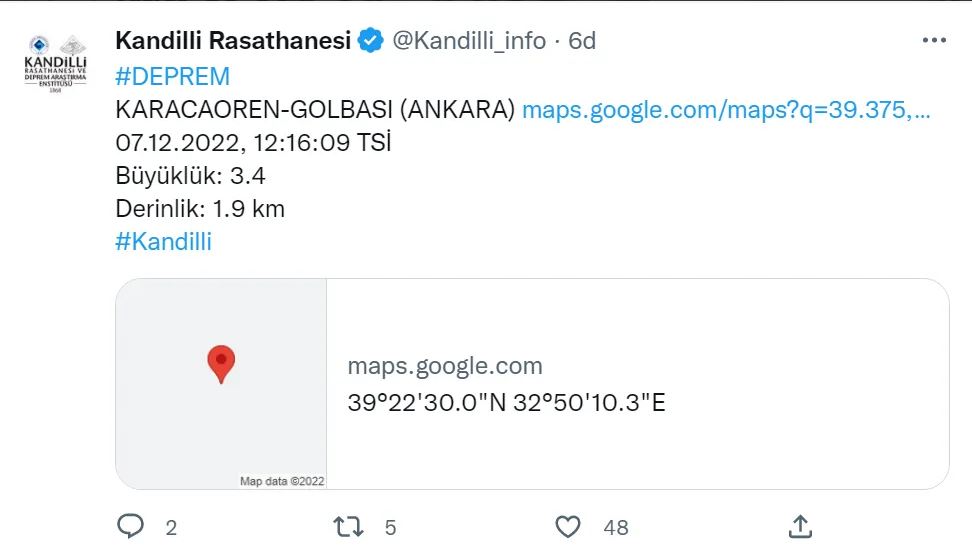 Başkent Ankara depremle sarsıldı. Gölbaşı merkezli 3.4 büyüklüğündeki depremle ilgili Kandilli Rasathanesi'nden açıklama var...