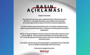 Yavaş’ın yaptığı açıklamada, “Son günlerde bazı basın yayın organlarında Ebru Gündeş konserine 69 milyon TL ödendiği yönünde yer alan iddialar bulunmaktadır. Bu konuyla ilgili iç denetim birimimiz inceleme başlatmıştır. Şeffaf bir yönetim anlayışı ile bu rakamın yalnızca bir konser için değil, 28-29 Ekim tarihlerinde düzenlenen Cumhuriyet Bayramı’nın 100. Yıl etkinlik giderleri ile teknik kurulum ve konser ücretlerini kapsadığını belirtmek isteriz. Ankaralıların kaynaklarını en iyi şekilde kullanmayı taahhüt ediyoruz” denildi.