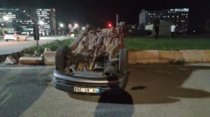Kampüs içerisinde meydana gelen trafik kazasında bankete çıkıp takla atan aracın içerisindeki 3 kişi yaralandı.