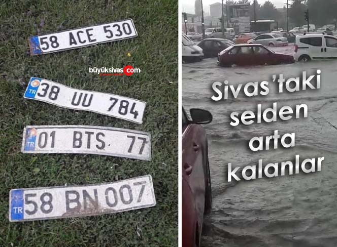 Yağmur o kadar şiddetli sel o kadar etkiliydi ki bir çok aracın plakası düştü.